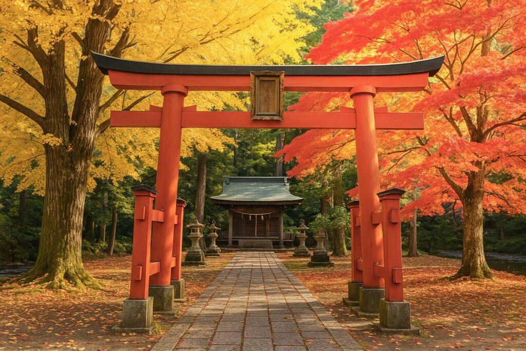 鳥居をくぐると、樹齢数百年の大イチョウやケヤキに囲まれた参道が続き、朱色の鳥居と燃えるような紅葉のコントラストが秋にひときわ映えます。本殿は江戸時代後期の建築様式を残し、静謐な雰囲気の中で心を鎮められます。